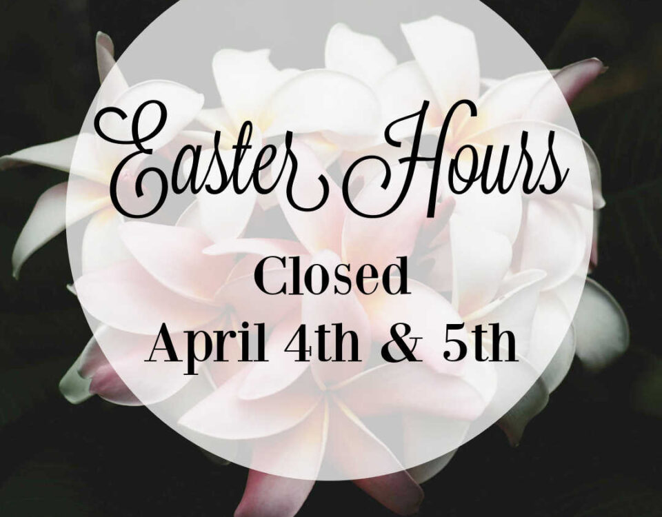 To celebrate the Easter holiday, we will have special hours at all of our salons. As noted on the graphic below, we will be closed on April 4th and 5th.